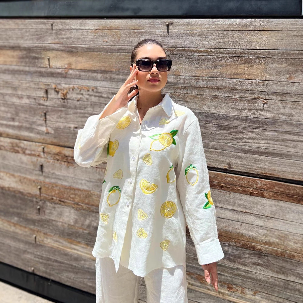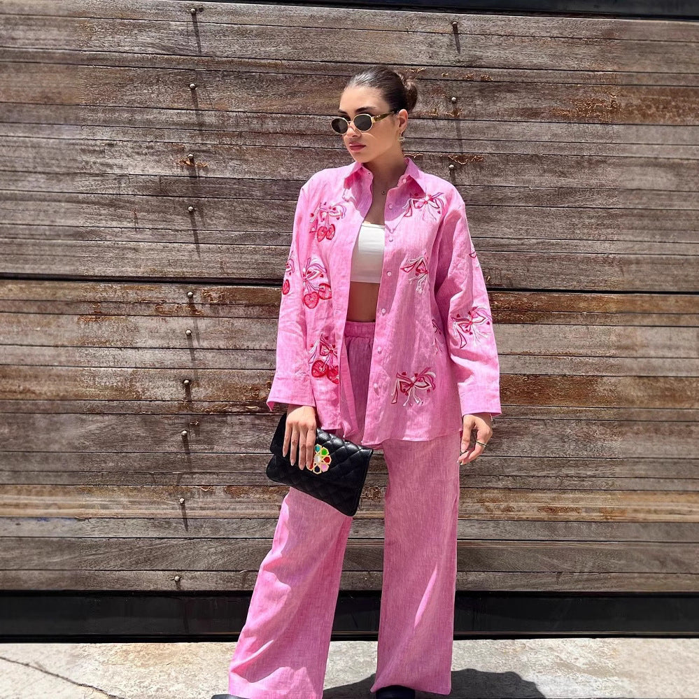 European And American Women's Clothing New Embroidered Shirt Casual Suit